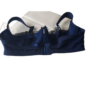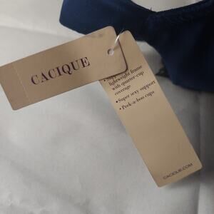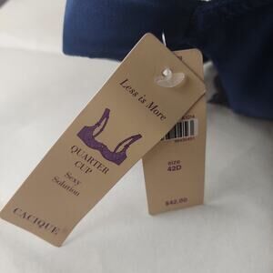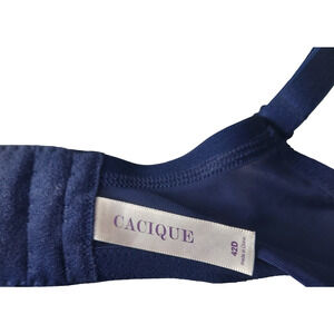 Cacique 42D Bra Navy Blue Satin Sexy Peekaboo Quarter Cup Black Lace Boudoir