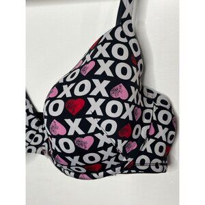 Playful and supportive, this Cacique 42DD bra features a black base with white “XOXO” lettering and pink heart accents — perfect for everyday wear or a flirty Valentine’s Day vibe. Lightly padded cups, adjustable straps, and underwire support for a comfortable fit.