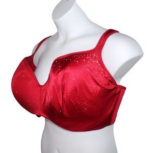 Cacique 44H Red Rhinestone Embellishment Full Coverage, Underwire Padded Cup Bra