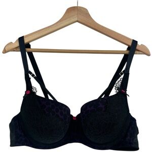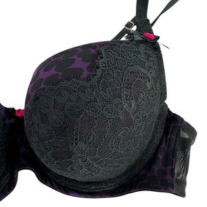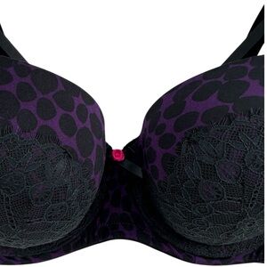 Cacique Animal-Print Boost Balconette Bra Black/Purple Sz 40B