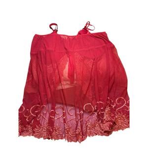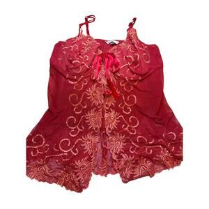 Cacique Babydoll Chemise Size 26/28 – Maroon Embroidered Lingerie – Padded Cups