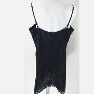 Item: Women's Black Crushed Velvet Lace Trim Slip Chemise Lingerie