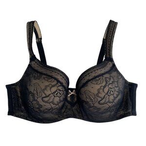Cacique Black Lace Full Coverage Bra 38D Underwire Excellent