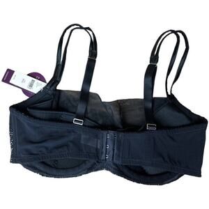 Cacique Black Silver Lurex Balcony Bra Women's Size 38DD NWT