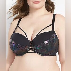 Cacique by Lane Bryant Boost Balconette Bra with Rainbow Metallic Embroidery Lace