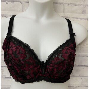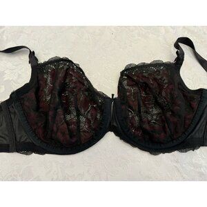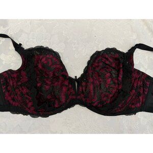 Cacique bra size 42DD unlined balconette black pink lace underwire bra-Good used condition.