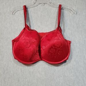 Cacique Bra Womens 42D Red Floral Padded Underwire Adjustable Mesh Band & Straps