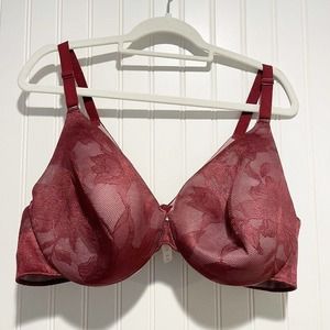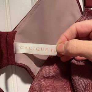 Cacique Burgundy Lace Lightly Lined Full Coverage Underwire Bra 44C