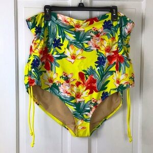 Cacique Floral High Waist Bikini Bottom Swim Retro Ruched Sides Plus Size 28 New