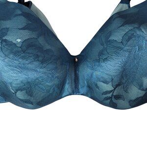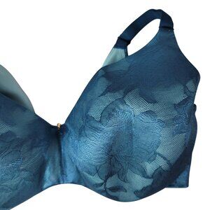 Cacique Full Coverage Bra Green Teal 40H Underwire Adj Floral Lace Lightly Lined