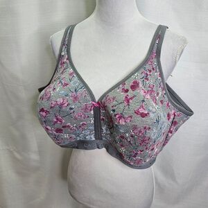 Cacique Gray and Pink Floral Lightly Lined No Wire Bra Size 52C