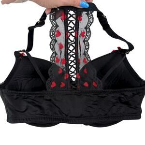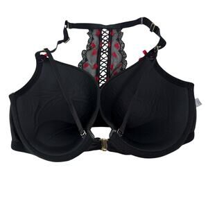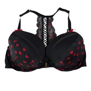Cacique Heart Lace Boost Plunge Bra Strappy Front Closure Push Up Black 38DD