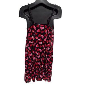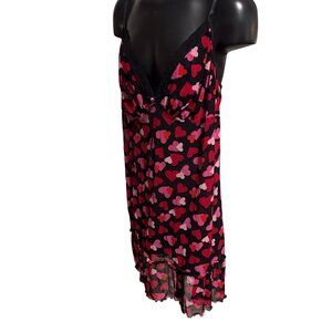 Cacique Intimates Womens Plus Size 14/16 Black Mesh Chemise Slip Pink Red Hearts