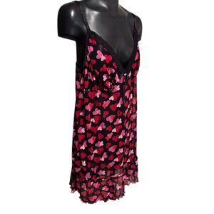 Cacique Intimates Black Mesh Chemise Slip with Pink & Red Hearts – Women’s 14/16