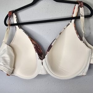 Cacique Intuition Full Coverage Womens Bra 40DDD Ivory Cream Brown Fall Leaves