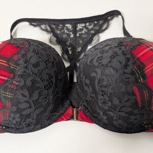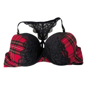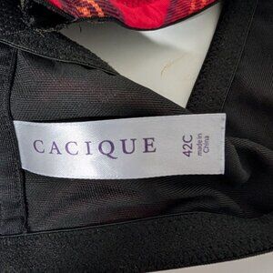 Cacique Lace Boost Plunge Bra Womens Size 42C Red Plaid Front Closure Stretch