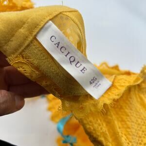 Bright and beautiful, this Cacique full‑coverage lace bra offers supportive underwire lift with a fun pop of color. The sunny yellow lace and contrasting teal straps add playful style while wide, adjustable straps and smoothing wings keep it comfortable for all‑day wear.