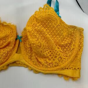 Cacique Lane Bryant Bra 42G Yellow Lace Underwire Teal Straps Full Coverage