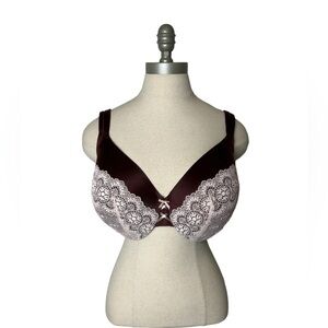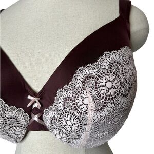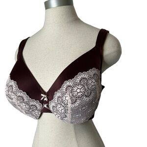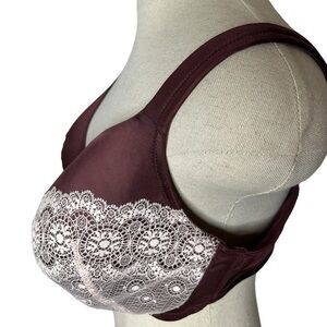 Cacique Lane Bryant Burgundy Pink Full Coverage Lace Plus Size Bra 38DDD