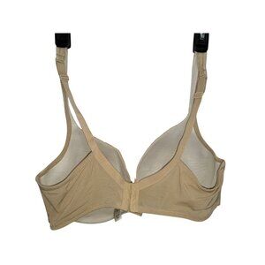 Pre-owned Cacique by Lane Bryant women’s bra in size 40DD. This Modern Lace style features full coverage cups with supportive underwire, adjustable straps, and a comfortable triple hook-and-eye closure. Designed in a versatile nude beige tone with a delicate lace overlay, making it both practical and elegant.