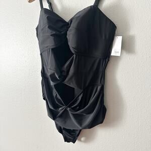 Cacique Lightly Lined No Wire Black One Piece Swimsuit women's plus size 20 NEW