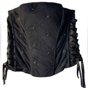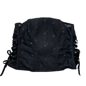 Cacique Mesh Floral Lace Up Corset Bustier in Black Size 22/24