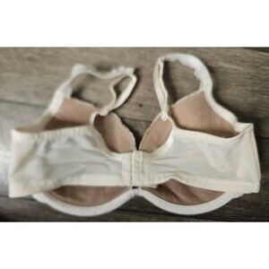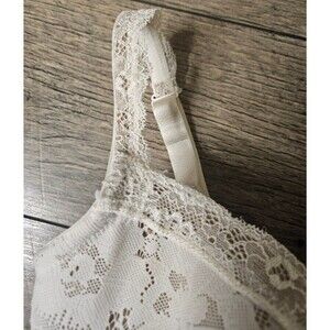 Cacique Modern Lace Covered Balconette Bra 38D White Beige Closure Padded