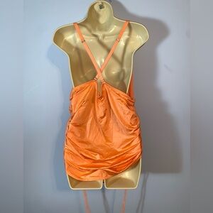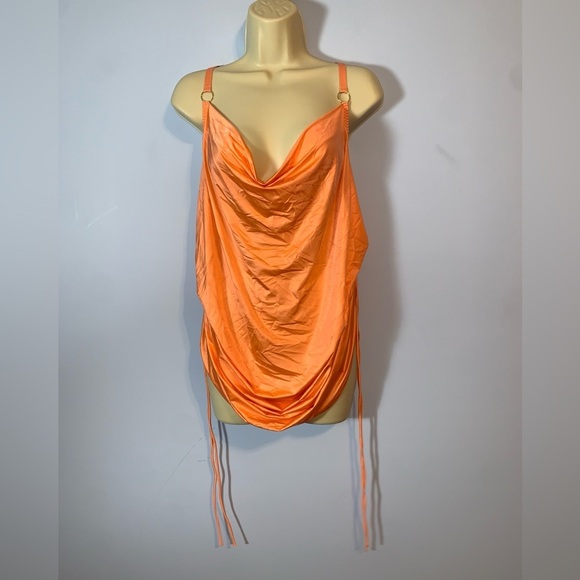 Cacique Orange Draped Women's tank Top satin side ruched criss cross back 22/24