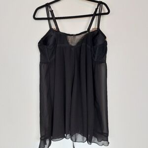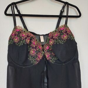 Cacique Plus Size Babydoll Black Floral Embroided Nightgown Top Size 22/24. Pre-owned, one of the ribbon is missing