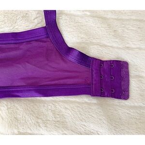 🪻 Cacique 40C plunge/boost bra with a black lace cup and a rich purple ruched overlay. Supportive underwire fit with adjustable straps and mesh back band. Pretty, lifted, and comfortable — a great everyday or special-occasion style.