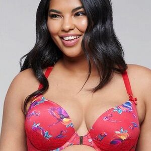 Cacique Seriously Sexy Red Floral Boost Plunge Bra (42DD)