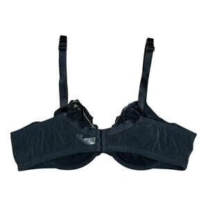 Cacique Sexy Balconette Bra Women 44 B Black Velvet Lace Trim Unlined Underwire