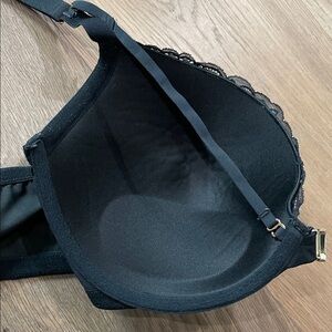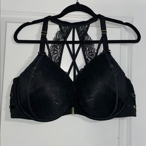 Cacique Shimmer Black Lace Strappy Front-Close Boost Plunge Bra Sz 44DD