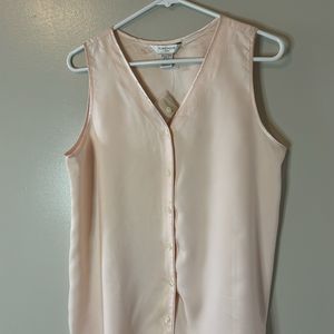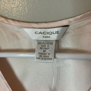 Cacique Sleeveless Pajama Top Beige Silky Button Up Sleep Size Medium NEW
