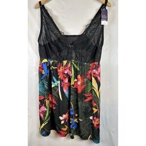 Cacique Spaghetti Strap Babydoll Floral Tropical 2 Piece Lingerie Plus 18/20 New