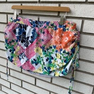 Cacique Swim Floral Patchwork High Waisted Adjustable Swimsuit Skirt Shaping