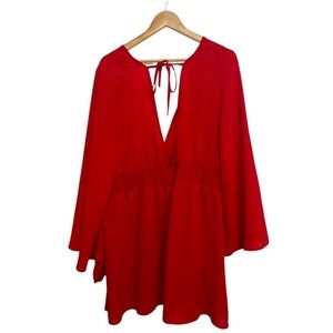 Cacique Swim Red Sheer Chiffon Tie Back Swim Dress Cover Up w/Pockets Sz 22/24