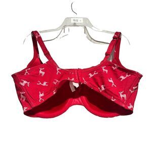Cacique T-Shirt Bra 42F Red Lightly Lined Deer Reindeer Underwired Full Support
