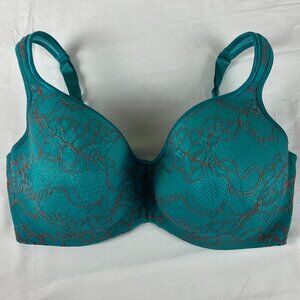Cacique Underwire Bra Size 38G Teal Blue, Lace Overlay on Cups, Padded