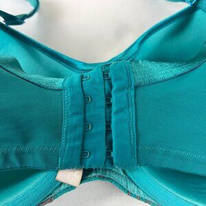 Cacique Underwire Bra Size 38G Teal Blue, Lace Overlay on Cups, Padded Shoulders and Cups, Adjustable Straps