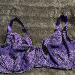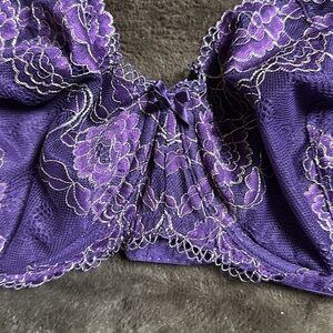 Cacique Unlined Balconette Purple and Metallic Gold Sz 46DDD