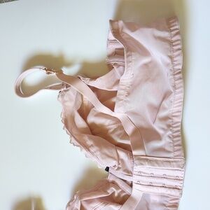 Cacique Unlined Curvy Balconette Size 50C Light Pink Blush Mesh Bows Lacy Lace
