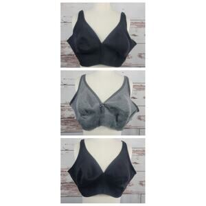 Cacique Unlined Full Coverage No Wire Bras Set of 3 Black Grey Size 46C