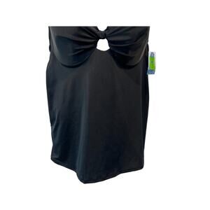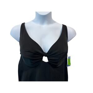Cacique Women Swim Tankini Top In Solid Black Key Hole Front Plus Size 42D NEW