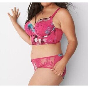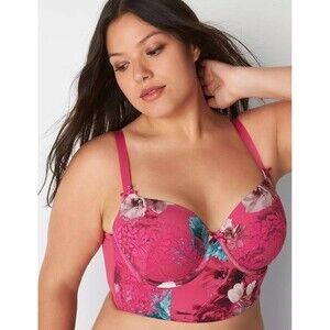 Cacique Womens Balconette Bra 42DDD Pink Longline Lightly Lined Floral Fantasy