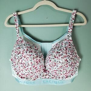 Cacique Womens Multicolor Green Floral Print Boost Plunge Bra Size 42C