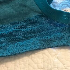 Cacique cotton boost plunge green/teal bra with lace (44B)