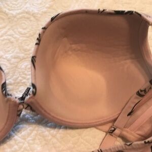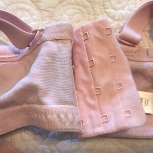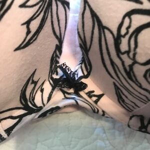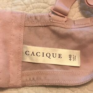 “Cotton boost plunge” bra by Cacique (by Lane Bryant) in pale pink with a pretty black outlined floral pattern. Underwire. Materials in pics. Size 44B. Hand wash (or machine wash in a bag) in cold water, line dry. Built-in padding adds a wonderful boost for cleavage. Has two different spots for straps to hook on to so you can do a crossover in back if you’d prefer. Four hooks in back for excellent support. Gently worn, this is in great shape—I just shrunk out of it. I have about 50 Cacique boost plunge (mostly cotton, some “smooth”) available in this size—good discounts for bundles!