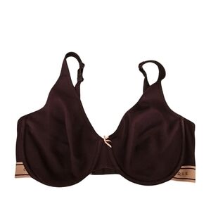 Cacique lined full coverage burgandy pink underwire logo bra sz 38 DDD