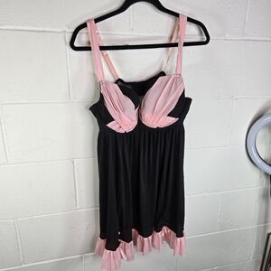 Cacique pink black ruffle coquette babydoll lingerie chemise